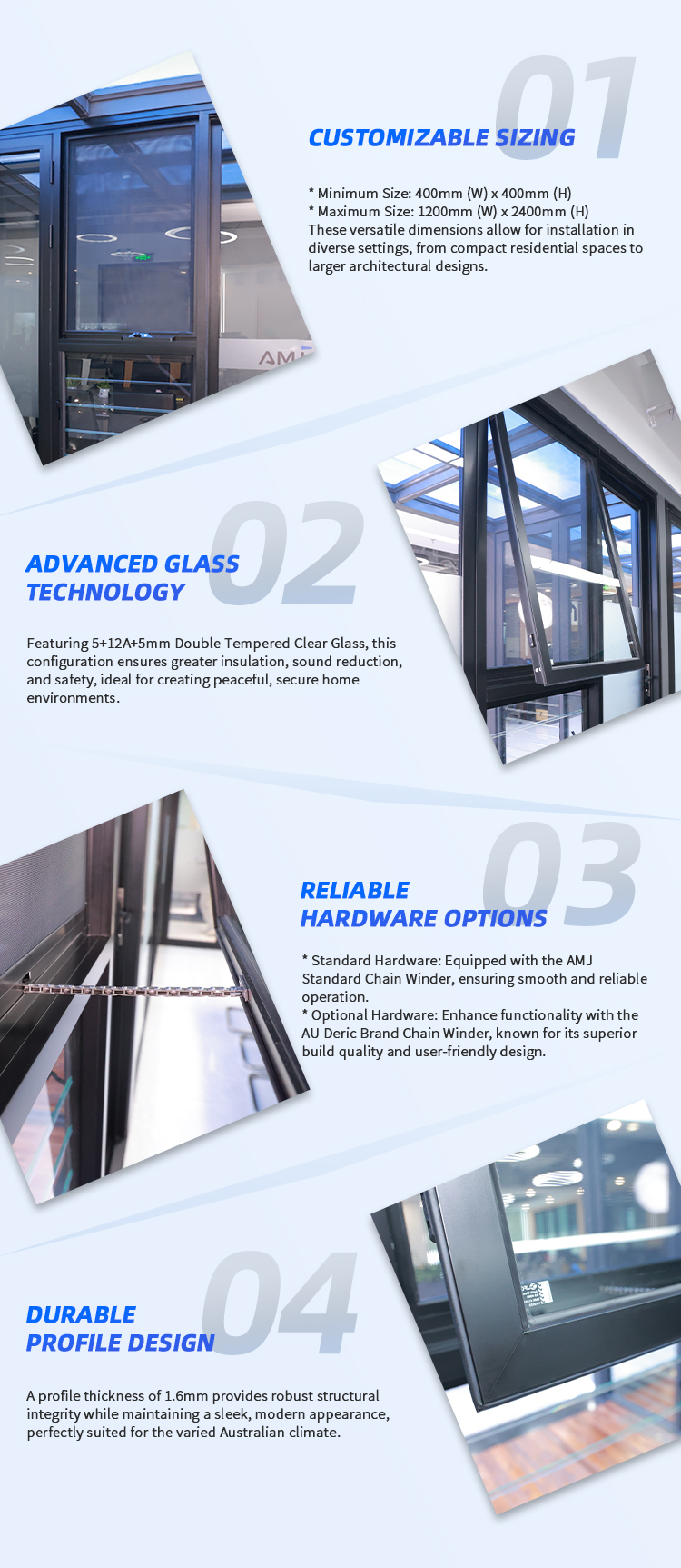 The AMJ 100L Series Awning Window offers an excellent blend of design, functionality, and performance, perfect for modern and traditional homes alike.